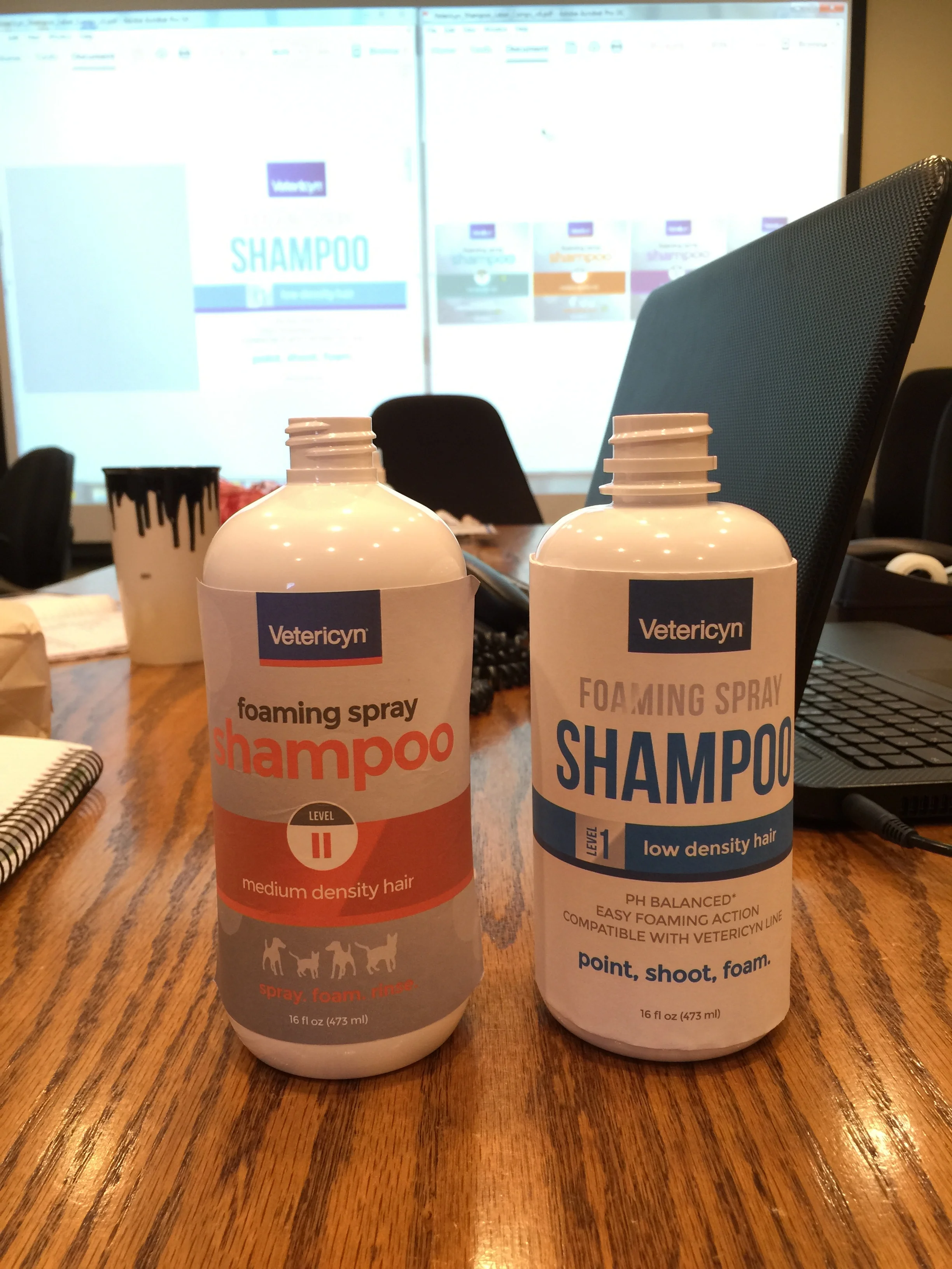 These were the preliminary mock-ups of the product labels. We were introducing a new way to apply shampoo on your pets using a trigger spray which produced a foaming shampoo. It was meant to be an easier and fun way to clean your furry loved ones.